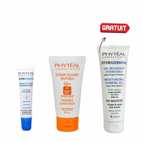 1 PACK PHYTÉAL ECRAN INVISIBLE SPF50+ 50ml + BAUME A LEVRE + HYDRADERMINE 250 ML OFFERT